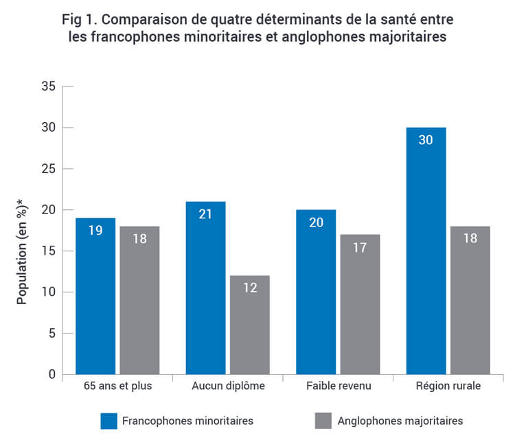 Le portrait des déterminants de la santé des communautés francophones en situation minoritaire est nettement défavorable comparativement aux anglophones vivant en contexte majoritaire.
