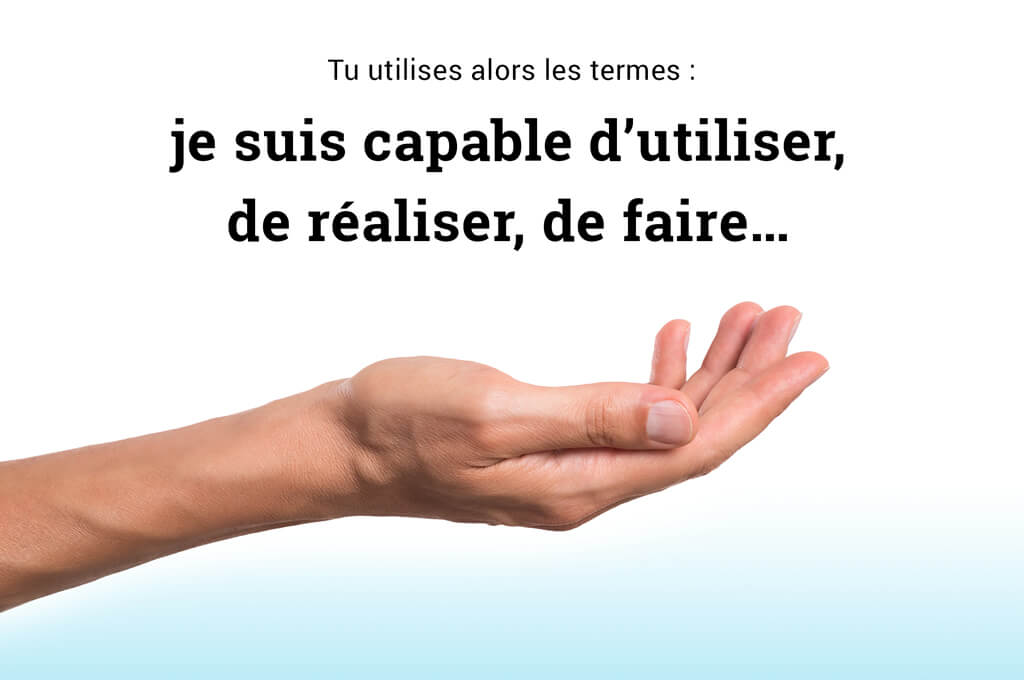 Tu utilises alors les termes : je suis capable d'utiliser, de réaliser, de faire…