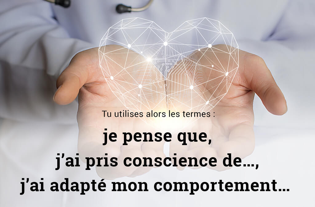 Tu utilises alors les termes : je pense que, j’ai pris conscience de…, j’ai adapté mon comportement…