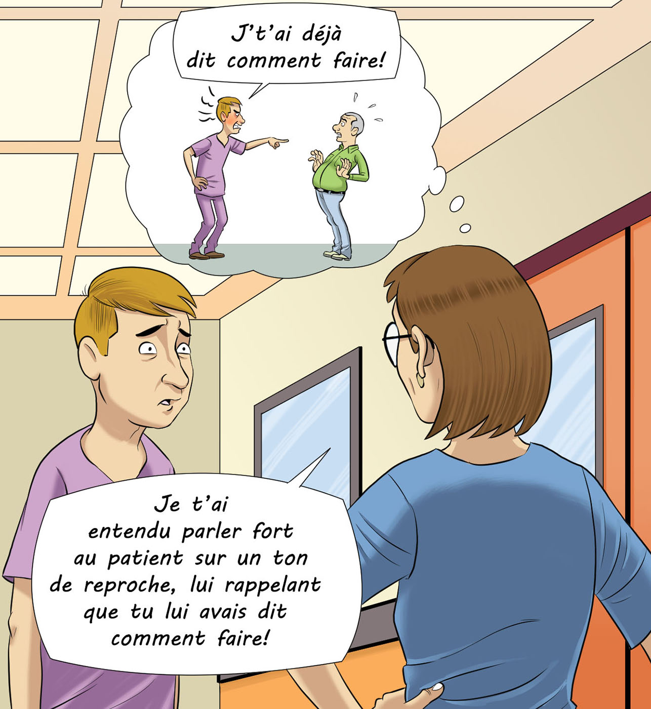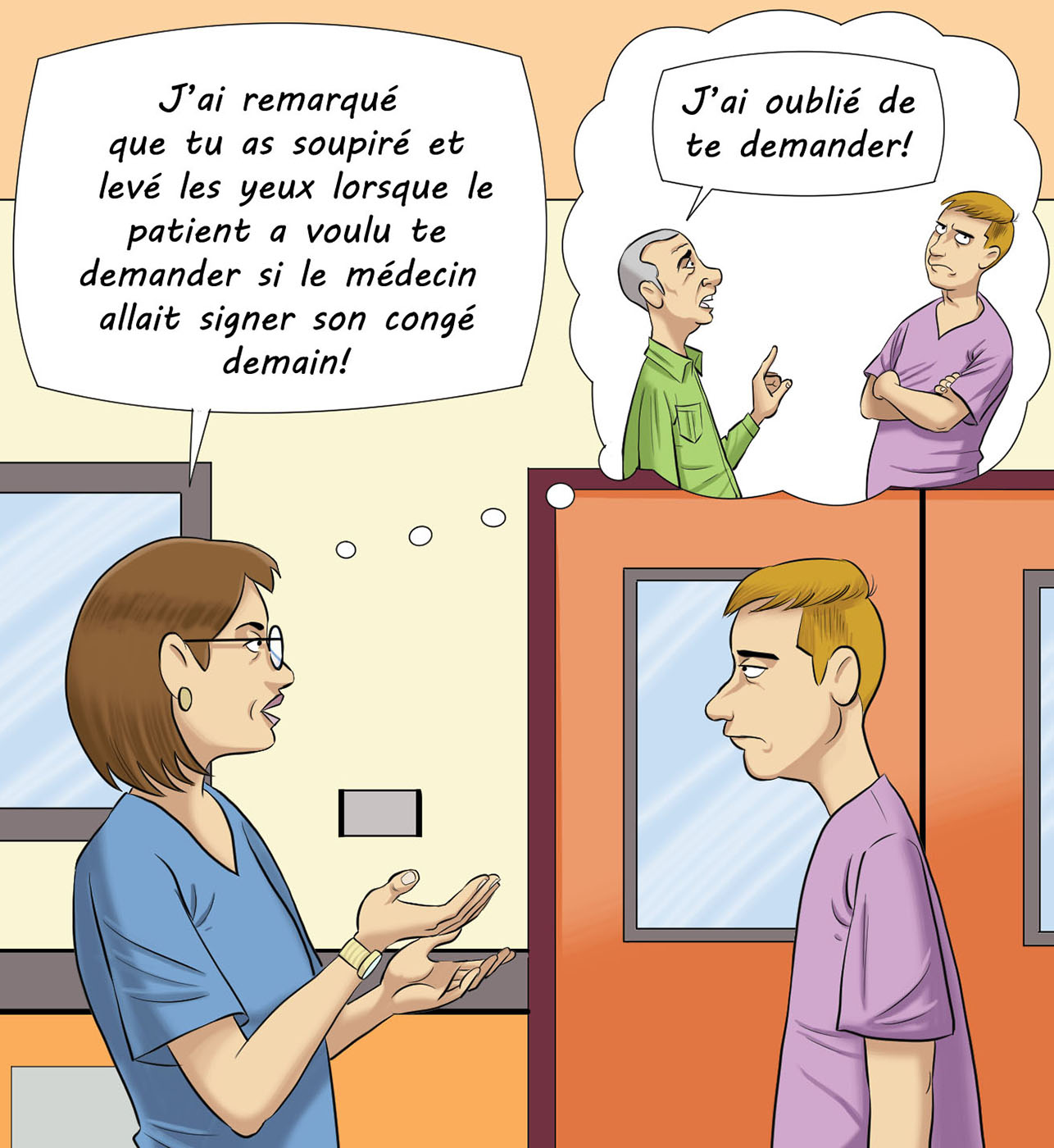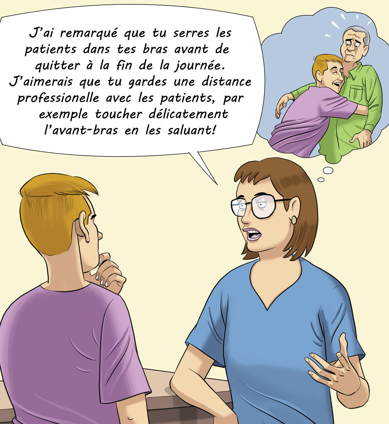 Par exemple, si le superviseur note : « Il a failli faire une erreur de médicament », il exprime une inquiétude, une possibilité ou une extrapolation, non pas un fait. Il devrait plutôt commenter sur le comportement observé, c'est-à-dire ce qui le mène à penser qu'une erreur aurait pu être commise. Il notera alors que le stagiaire n’a pas vérifié le dosage du médicament ou le bracelet d'identification du patient, ces deux actions faisant partie des cinq vérifications essentielles avant de donner un médicament.
